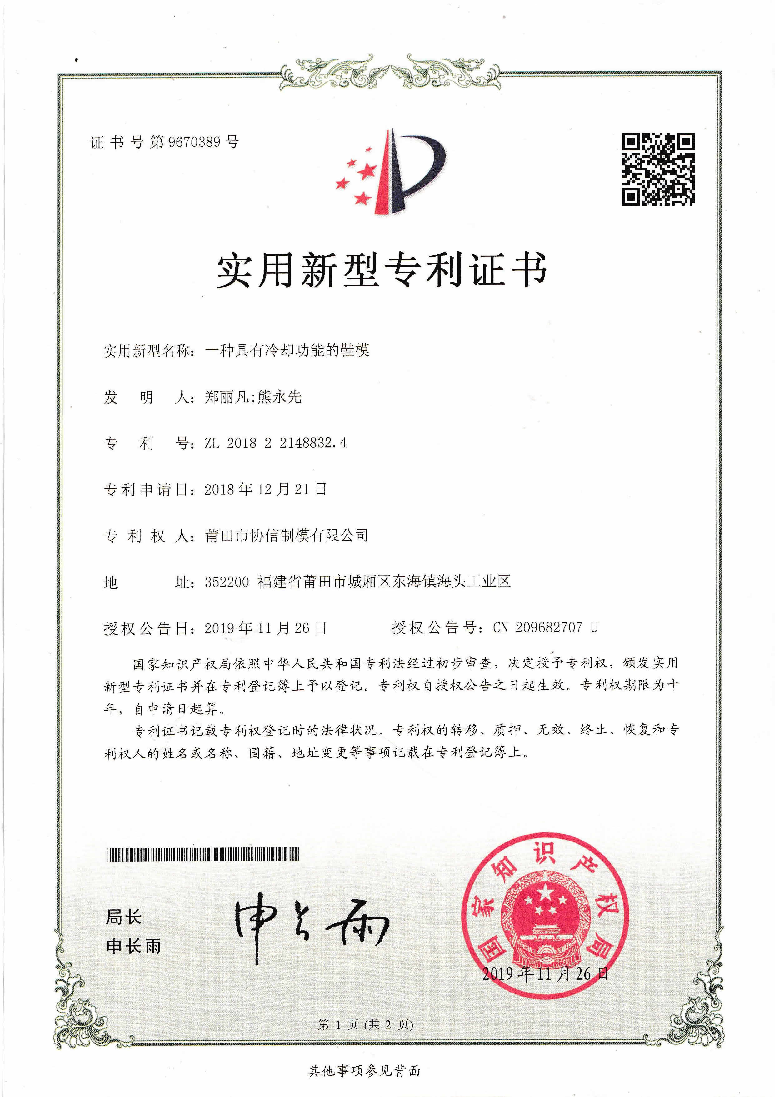 2個(gè)發(fā)明專利證書(shū)...